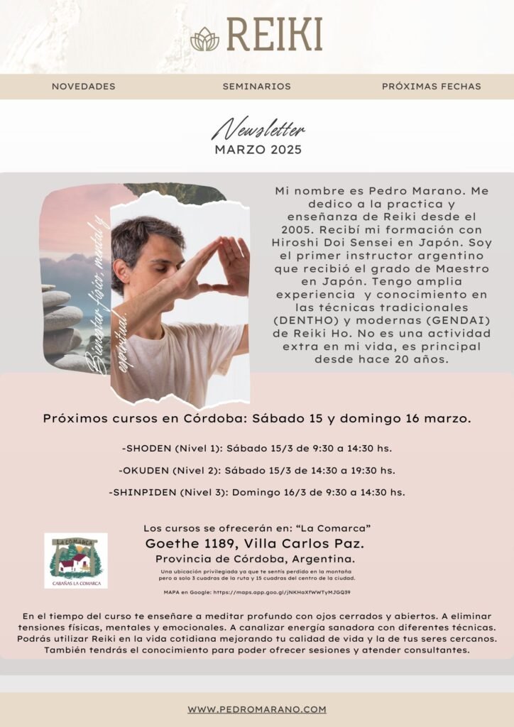 15 y 16 de Marzo cursos completos de REIKI en “La Comarca”, Carlos Paz.